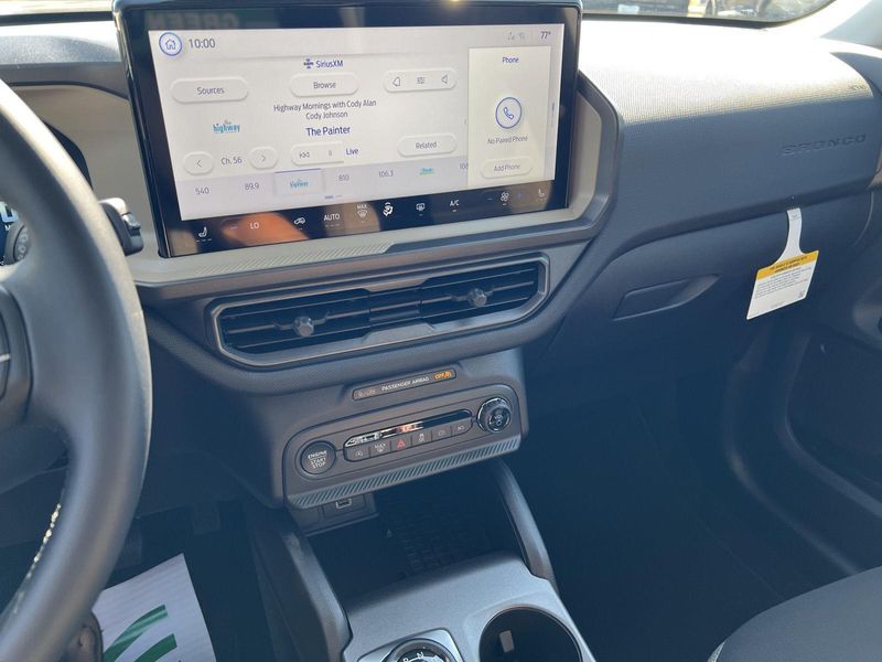 2025 Ford Bronco Sport Big Bend Ready to make a statement on the road? This 2025 Ford Bronco Sport Big Bend is priced to move and waiting for you. Convenience Package ($1,895 value) LED Fog Lamps Front Driver/passenger Seat Back Map Pockets Heated 8-Way Power Driver's Seat Premium Wrapped Steering Wheel Universal Garage Door Opener (UGDO) Equipment Group 200A 8-Speed Automatic Transmission 1.5L EcoBoost Engine Cloth with Easy-To-clean Front Bucket Seats AM/FM Stereo Convenience This intelligent cruise control system uses laser or radar to maintain a preset following distance behind another vehicle, automatically braking (to a complete stop if needed) or accelerating as required. Safety and Security With this system the driver's hands must remain on the wheel at all times but can be removed briefly (for a few seconds), otherwise the vehicle will prompt the driver to put their hands back on the wheel. The vehicle is equipped with a system that senses, and then prepares, the vehicle and/or occupants, for an impending forward collision. The vehicle constantly monitors the roadway in front of the vehicle and identifies and tracks pedestrians on an interior display. If the system determines a likely impact, it will automatically take preventative steps to avoid hitting the pedestrian. The vehicle is equipped with a camera that displays an image of the area behind the vehicle on an interior display. An active lane departure system alerts the driver of unintended movement of the vehicle out of a designated traffic lane and automatically maintains the vehicle's position within that lane. The vehicle is equipped with a system that senses, and then prepares, the vehicle and/or occupants, for an impending rear collision. Technology and Telematics SYNC 4 AppLink/Apple CarPlay/Android Auto smart device wireless mirroring This vehicle is priced to move. Drive home today in your new vehicle, with the Greenway experience. Our family run business prides ourselves on providing exceptional value and a hassle-free buying experience. To be sure you don't miss out, give us a call and schedule a test drive. We are located at 300 West Bedford Road Morris IL 60450 - (815) 942-3400. WE LOOK FORWARD TO SEEING YOU SOON! Despite our best efforts to ensure the accuracy of the information on this site, we cannot guarantee complete accuracy. The site and all information and materials provided are offered to users as is without any kind of warranty, either express or implied. All vehicles are subject to prior sale. The listed price does not include applicable taxes, title fees, and a documentation fee of $367.70.