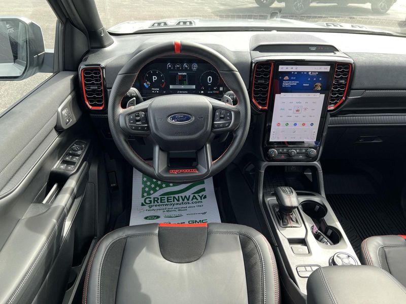 2026 Ford Ranger Raptor Ready to make a statement on the road? This 2026 Ford Ranger Raptor is priced to move and waiting for you. Convenience In addition to basic cruise control functionality, adaptive cruise has the ability to automatically speed up and slow down the vehicle to match the speed of the vehicle ahead. If there is no vehicle ahead, it will maintain the cruising speed set by the driver. If the vehicle ahead comes to a complete stop, this system will bring the vehicle to a stop and resumes using automatic sensors or driver input. Safety and Security The vehicle is equipped with a system that senses, and then prepares, the vehicle and/or occupants, for an impending forward collision. The vehicle constantly monitors the roadway in front of the vehicle and identifies and tracks pedestrians on an interior display. If the system determines a likely impact, it will automatically take preventative steps to avoid hitting the pedestrian. The vehicle is equipped with a camera that displays an image of the area behind the vehicle on an interior display. The vehicle is equipped with a system that senses, and then prepares, the vehicle and/or occupants, for an impending rear collision. An active lane departure system alerts the driver of unintended movement of the vehicle out of a designated traffic lane and automatically maintains the vehicle's position within that lane using countermeasures such as braking and/or steering. If the driver uses the turn signals, the system is temporarily disabled. Technology and Telematics SYNC 4 AppLink/Apple CarPlay/Android Auto smart device wireless mirroring Mobile devices can wirelessly connect to the internet through the vehicle's private mobile network. ENGINE: 3.0L ECOBOOST V6, AVALANCHE This vehicle is priced to move. Drive home today in your new vehicle, with the Greenway experience. Our family run business prides ourselves on providing exceptional value and a hassle-free buying experience. To be sure you don't miss out, give us a call and schedule a test drive. We are located at 300 West Bedford Road Morris IL 60450 - (815) 942-3400. WE LOOK FORWARD TO SEEING YOU SOON! Despite our best efforts to ensure the accuracy of the information on this site, we cannot guarantee complete accuracy. The site and all information and materials provided are offered to users as is without any kind of warranty, either express or implied. All vehicles are subject to prior sale. The listed price does not include applicable taxes, title fees, and a documentation fee of $377.63.